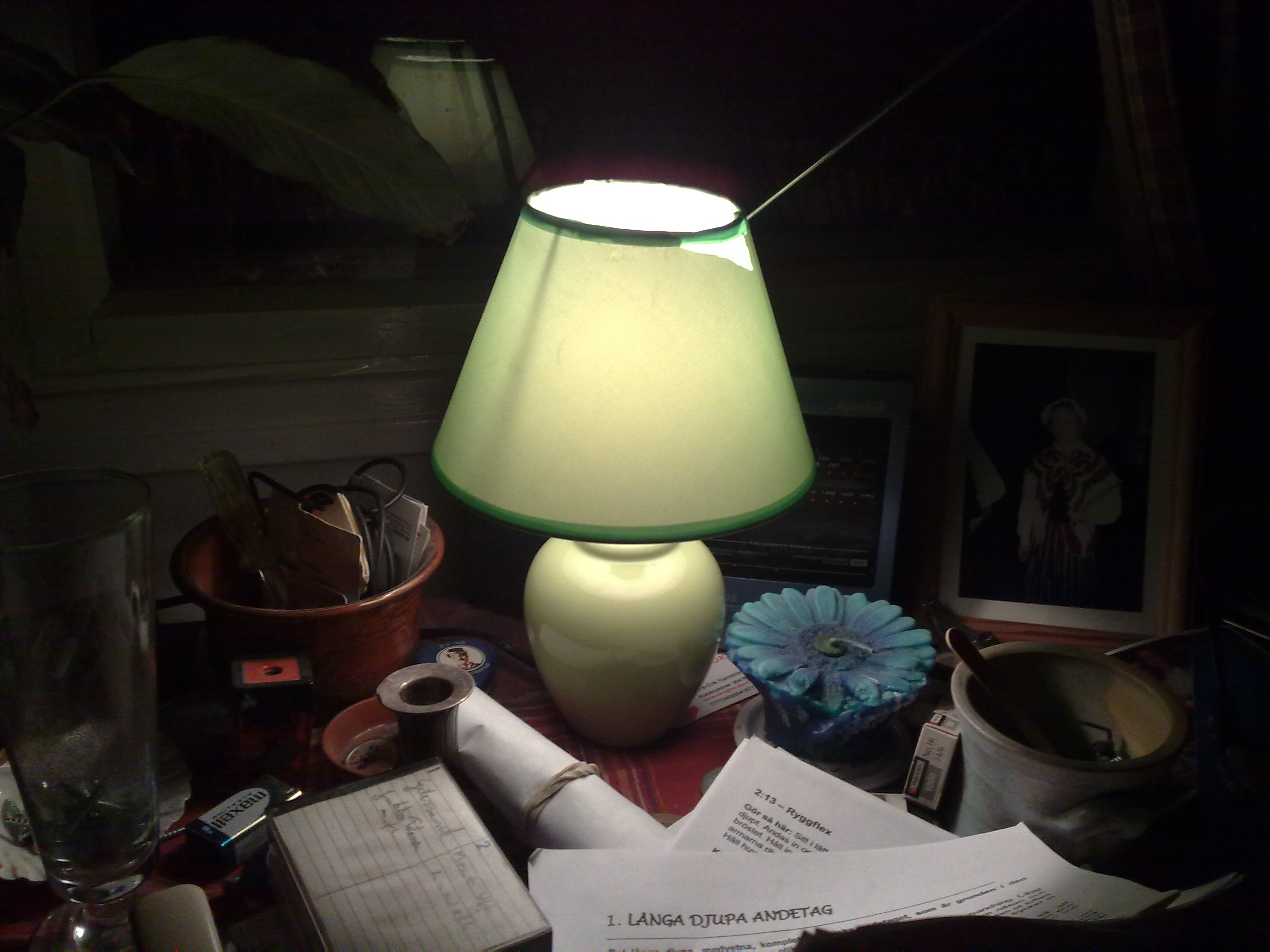 Det är inte ofta vi handlar grejor till hushållet men häromdagen hittade C två gröna lampor på Emmaus. Snygga med mysigt grönt ljus. Den ena har vi i kontoret och den andra i vardagsrummet.