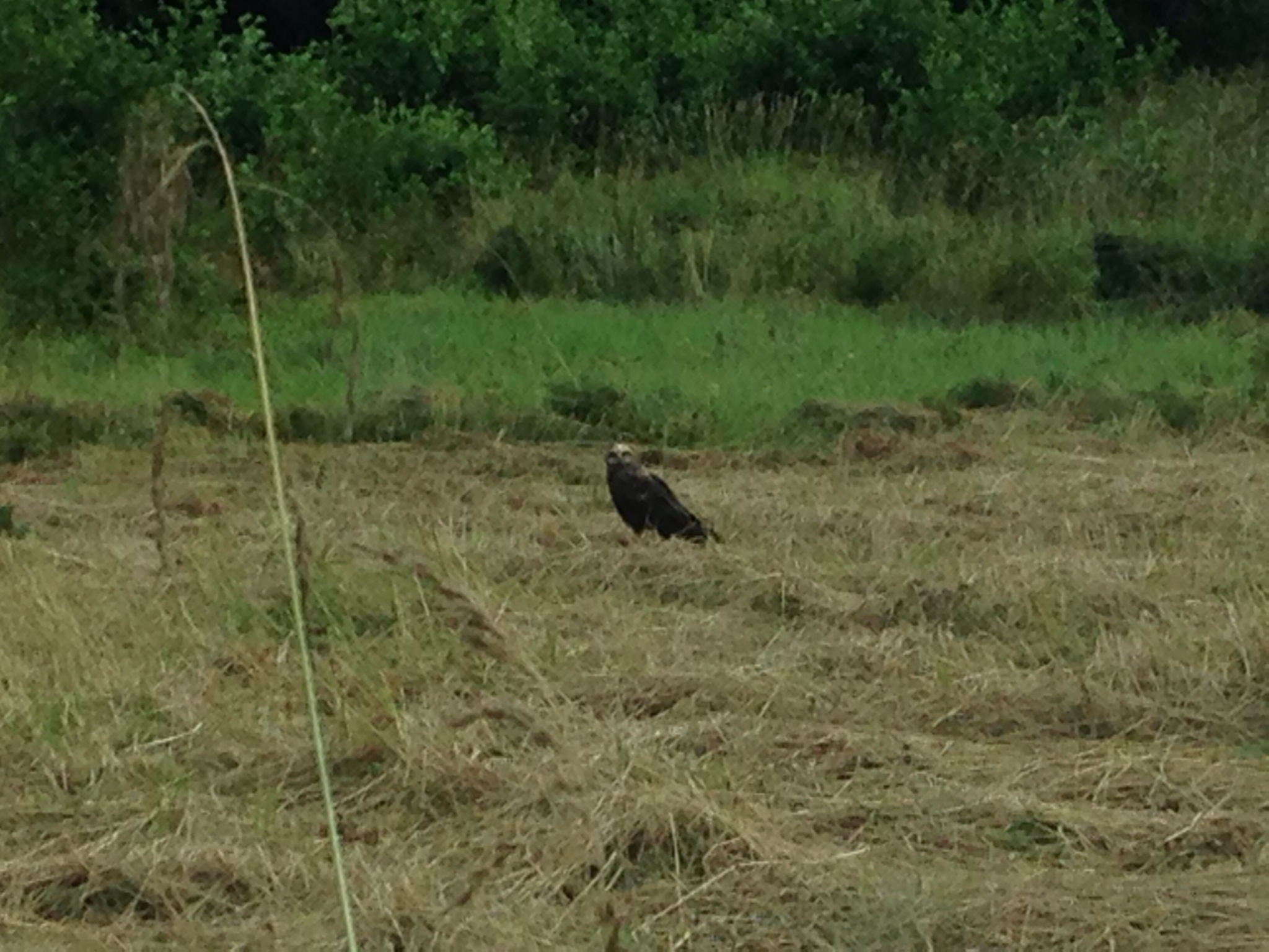 På väg ner till badstranden såg vi denna fågel som bara satt och tittade på oss. En brun kärrhök visade det sig då vi slagit upp den i fågelboken. Den visade sig inte det minsta rädd då vi stannade bilen och betraktade den. Kanske var den sjuk eller bara cool. Då vi åkte hem var den borta.
