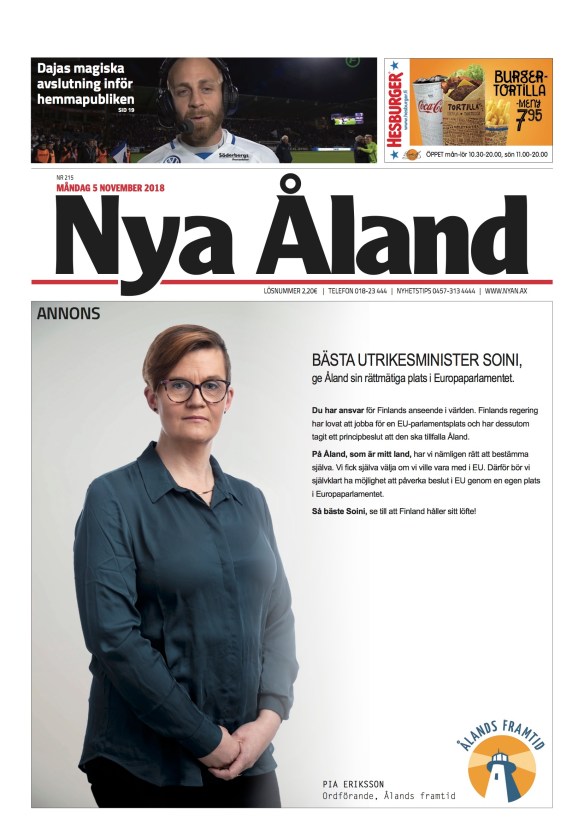 Jag kan inte låta bli att dela Ålands framtids fyndiga annons inför Finlands utrikesministers besök på Åland 5 november.